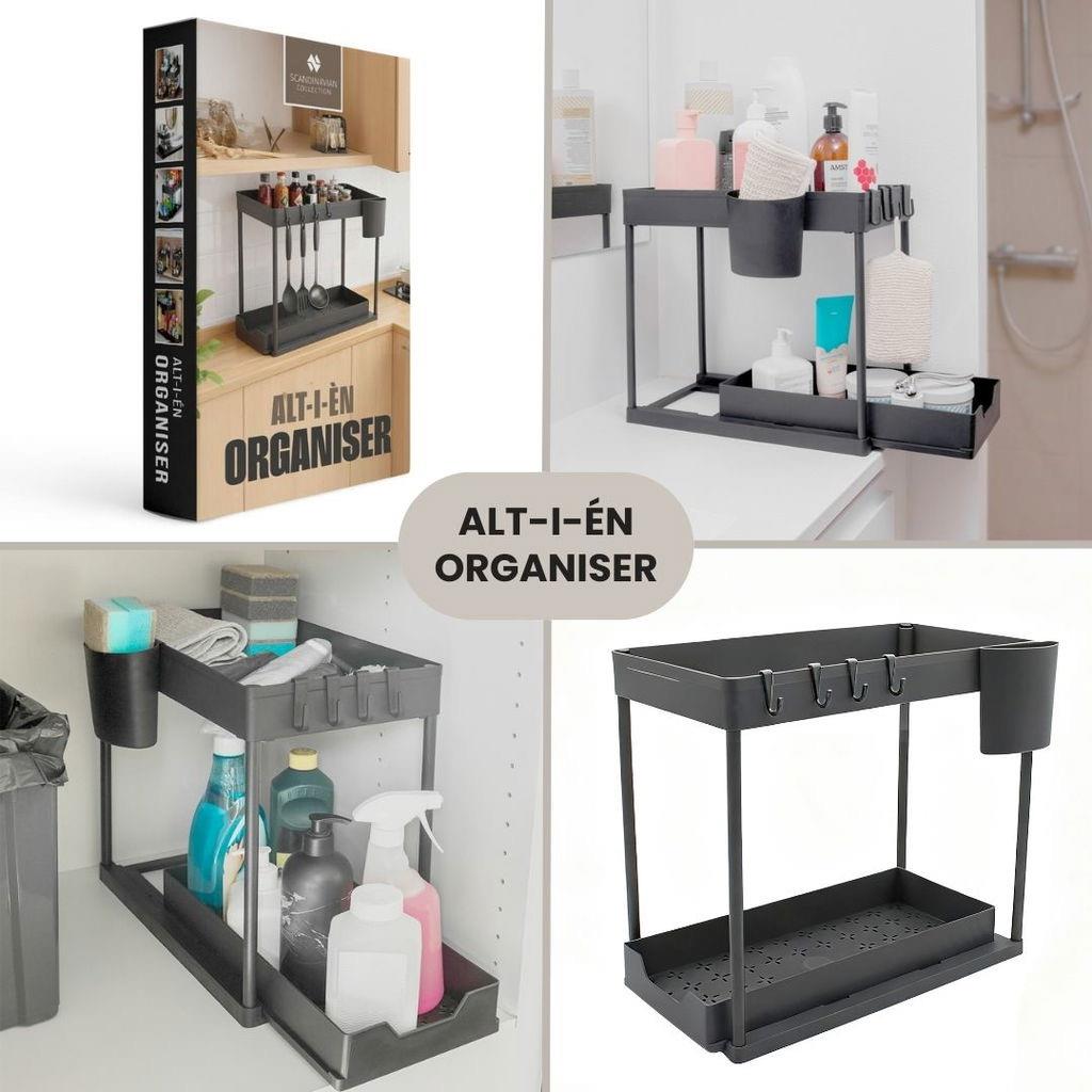 Denne alt-i-én organiser kan bruges i køkken, bad, bryggers, rengøringsskab, garderobe og meget mere.
